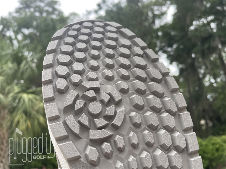 When I evaluate how aggressive a sole is I always start with: “Would I wear the shoes on my new wood floors?” And for the JAPAN S Golf shoes, the answer was an easy “Yes.” That’s not necessarily a ding on traction, but establishes expectations for gription potential during play. The uniform, moderate height lugs of the JAPAN S Golf did provide reasonable traction. I had some slippage on wet short grass, but overall, I felt connected and confident standing over shots. The circular design of the lugs at the balls of my feet did keep me engaged and grounded during pivot transitions of my swing.