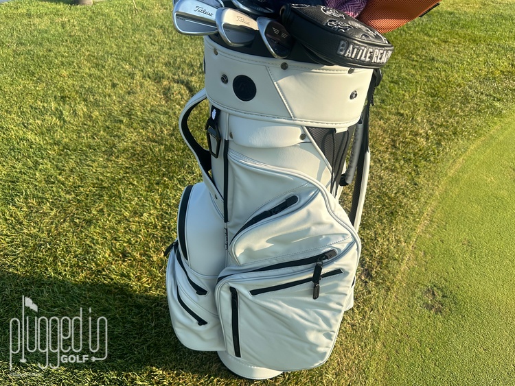 It probably goes without saying but the BIG MAX Dri Lite Silencio Prime is not for the walking golfer. This bag is made for riding carts, and it thrives in that setting. There’s a cart strap pass through so that every pocket remains accessible. It can also operate well on a push cart, but it needs to be nearly upright. Unsurprisingly, it works very well on the BIG MAX Blade IP 2 [review HERE], but push carts that let the bag lay flatter won’t take full advantage of the top design.