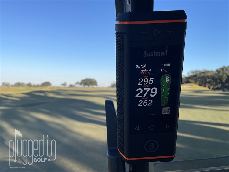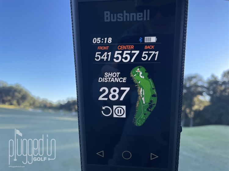 Selecting “Play” on the Bushnell Golf app populated courses and with a few more clicks my round was started. The first hole was vividly displayed on the Wingman HD screen.