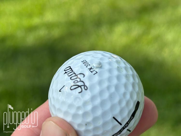 Starting with the putter, the LTX 3085 feels somewhere between the Pro V1 and the Pro V1x. On short putts, it’s medium-soft with a quiet “thud”. Getting out to ten feet or more, the sound picks up a crisper, mid-pitch “tock”. With wedges and irons, the feel is good but not exceptional in any direction. It’s not super soft and squishy like a DUO or Chrome Soft [review HERE] nor is it notably firm or clicky.