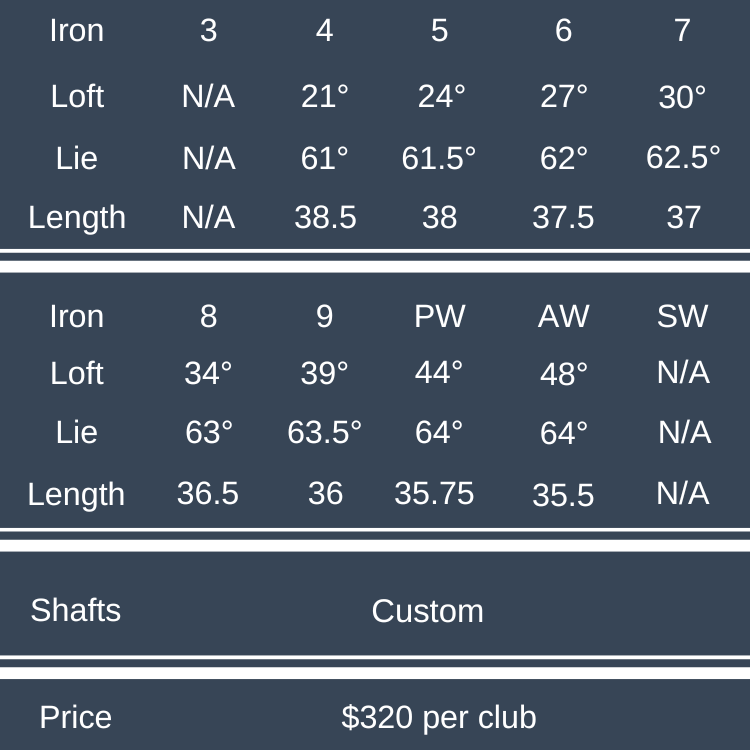 The story on dispersion and workability is similar. Small misses won’t create much twisting in the club head and will typically hold their intended line. If you make a medium or large error, however, you can expect to hit the ball to all fields. The tradeoff is that these irons do offer the kind of shot control you would expect from a smaller game improvement iron. This is another area where I disagree with Miura’s ratings – the workability is definitely more than 1 star, but the forgiveness is not nearly 5 stars. If you’re looking for substantially more forgiveness, I would look to something like the Miura IC-601 [review HERE].