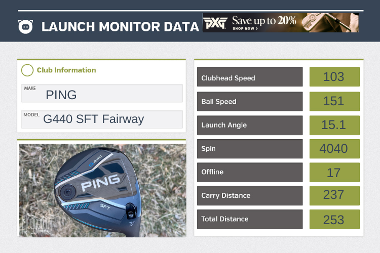 I just tested the LST model, and I found that there was not much drop off in ball speed with the PING G440 SFT fairway wood. Some of this is attributed to the SFT technology which allows the face to match the club path more often. The other factor is that the deeper face has expanded the sweet spot which helps retain balls speeds on a larger percentage of strikes.