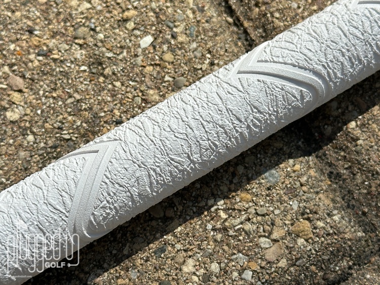 Each Star Grip STX grip is monochromatic which allows the aggressive texture to be the focus. The majority of the grip is covered in a bold, sandpaper-like texture meant to offer increased grip. Only the bottom of the grip is smooth, the backdrop to the “STAR” branding. Separating the segments of texture are five Vs – three point-down, two point-up – which serve as aids for proper hand placement and a way to precisely choke down on the club.