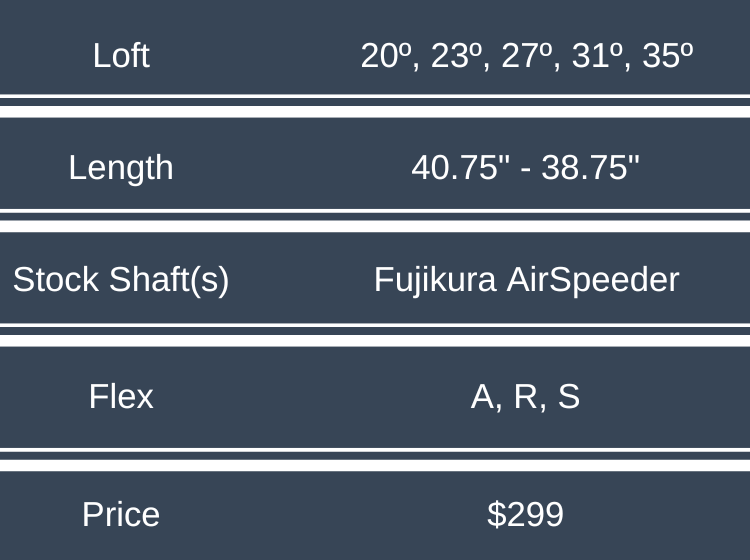 The TaylorMade Qi35 Max Rescue produces towering ball flight. Tremendous forgiveness – every shot gets up and flies fast. Moderate draw bias.