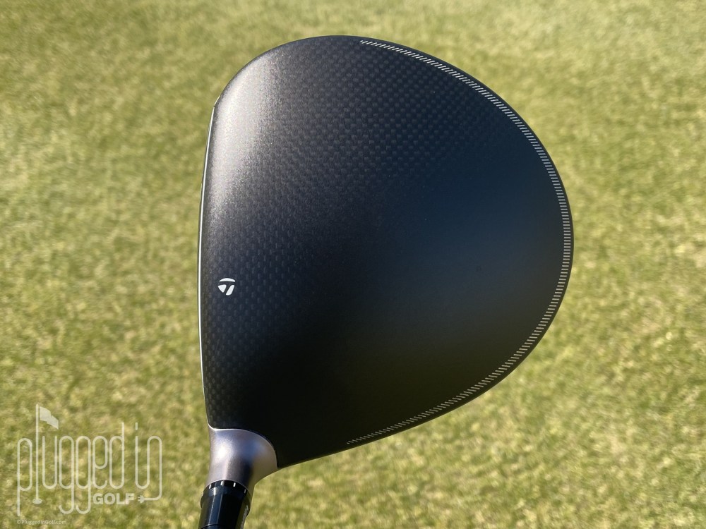 At address, the TaylorMade Qi4D Max Lite driver has a very appealing rounded silhouette. The all black, matte finish looks fantastic and I greatly like the toned-down visibility of the carbon weave compared to the Qi35 Max Lite [review HERE]. As with most modern drivers it’s important to note the center of the club face, and the small logo “T” is perfect for doing such.