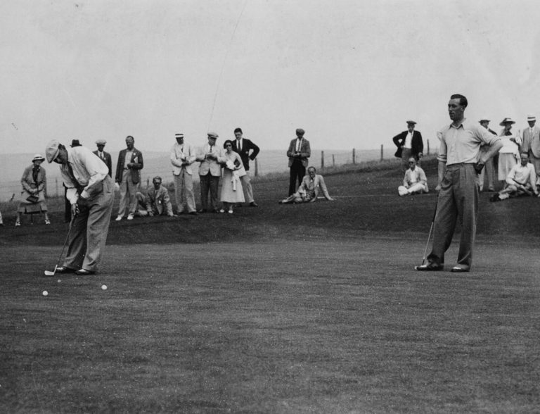 Such was the case with East Brighton Golf Club in East Sussex, which hosted a number of high-profile tournaments during the inter-war period. In 1933, the great Walter Hagen teamed up with fellow American Densmore Shute to beat Alf Padgham and Charlie Parsons 6&5 in an exhibition match which saw huge crowds turn out to watch their heroes in action in such unfamiliar surroundings.