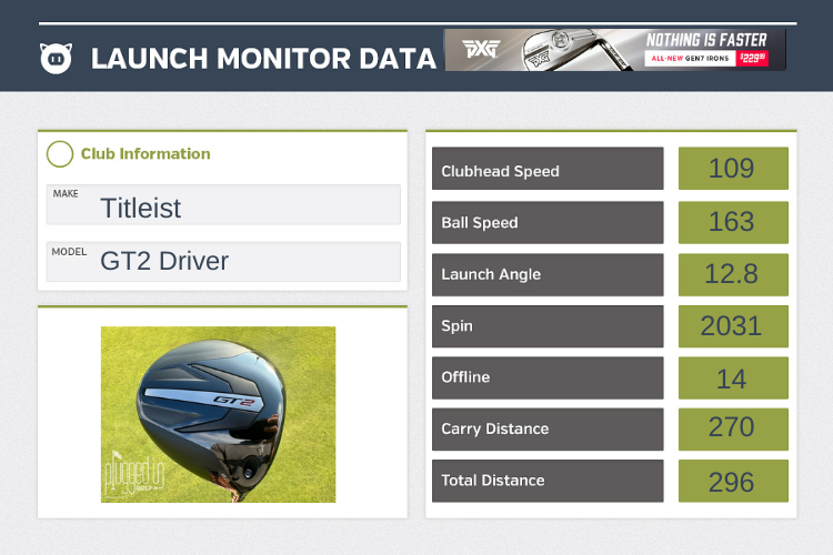The major advancement in the Titleist GT2 driver is the seamless thermoform crown. This new material allowed Titleist’s club design team to create a more aerodynamic head – leading to more club and ball speed – without sacrificing ideal launch and spin characteristics [learn more about this direct from Titleist on the podcast HERE]. In my testing, the claims of greater speed are legit: I’ve created more ball speed with the GT drivers than any others I’ve tested.