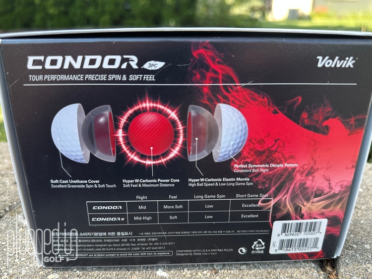 As with most OEMs, Volvik is not exactly forthcoming about the performance differences between the two Condor golf balls, stating both have “Low” long game spin and “Excellent” short game spin. Both have a “Soft Cast Urethane Cover” and “336 Perfect Symmetric Dimple Pattern”. The Condor X has the aforementioned higher compression and a 4-piece construction to the Condor’s 3-piece. Reading the box, Volvik notes that the Condor X has a “Mid-High” flight whereas the Condor is “Mid”. On the bright side, if the OEMs were more forthcoming, you wouldn’t need me.